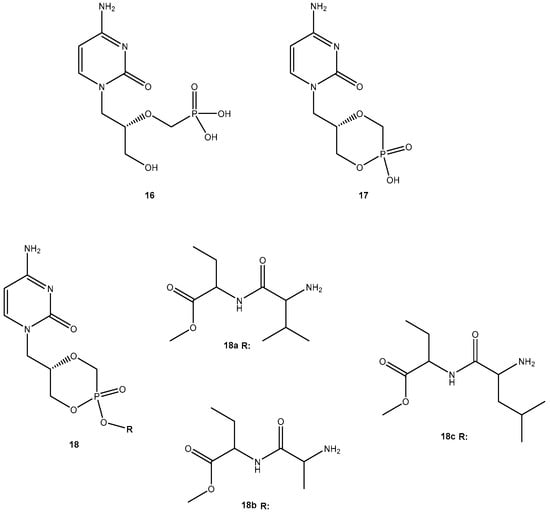 - McKenna, C.E.; Kashemirov, B.A.; Eriksson, U.; Amidon, G.L.; Kish, P.E.; Mitchell, S.; Kim, J.-S.; Hilfinger, J.M. Cidofovir peptide conjugates as prodrugs. J. Organomet. Chem. 2005, 690, 2673–2678. [Google Scholar] [CrossRef]