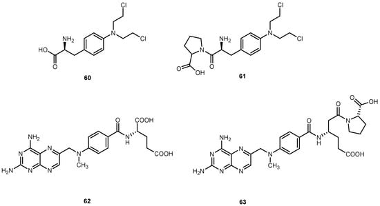 - Chrzanowski, K.; Bielawska, A.; Palka, J. Proline analogue of melphalan as a prodrug susceptible to the action of prolidase in breast cancer MDA-MB 231. Il Farmaco 2003, 58, 1113–1119. [Google Scholar] [CrossRef]