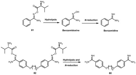 - Kotthaus, J.; Hungeling, H.; Reeh, C.; Kotthaus, J.; Schade, D.; Wein, S.; Wolffram, S.; Clement, B. Synthesis and biological evaluation of L-valine-amidoxiesters as double prodrugs of amidines. Bioorg. Med. Chem. 2011, 19, 1907–1914. [Google Scholar] [CrossRef] [PubMed]