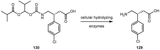 - Lal, R.; Sukbuntherng, J.; Tai, E.H.L.; Upadhay, S.; Yao, F.; Warren, M.S.; Luo, W.; Bu, L.; Nguyen, S.; Zamora, J.; et al. Arbaclofen placarbil, a novel R-baclofen prodrug: Improved absorption, distribution, metabolism, and elimination properties compared with R-baclofen. J. Pharm. Exp. Ther. 2009, 330, 911–921. [Google Scholar] [CrossRef] [PubMed]