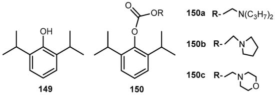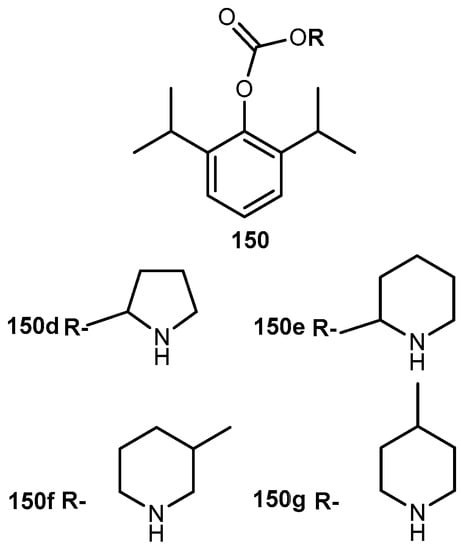 - Altomare, C.; Trapani, G.; Latrofa, A.; Serra, M.; Sanna, E.; Biggio, G.; Liso, G. Highly water-soluble derivatives of the anesthetic agent propofol: In vitro and in vivo evaluation of cyclic amino acid esters. Eur. J. Pharm. Sci. 2003, 20, 17–26. [Google Scholar] [CrossRef]
