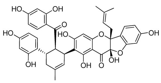 - Li, L.C.; Shen, F.; Hou, Q.; Cheng, G.F. Inhibitory effect and mechanism of action of sanggenon C on human polymorphonuclear leukocyte adhesion to human synovial cells. Acta Pharmacol. Sin. 2002, 23, 138–142. [Google Scholar] [PubMed]