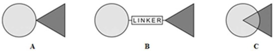 - Synergism by combining various active chemistry building blocks—pharmacomodulation of two biologically active structures by chemical hybridization methods leads to a new combined structure with interesting biological activity. According to the recent literature, the compounds derived from different bioactive molecules are often characterized by a synergy of their individual component activities. Many trends have been proposed for the design of new drugs containing different structures (dimers, heterodimers, heteromers, adducts, associates, complexes, biooligomers, dendrimers, dual-, bivalent-, multifunction drugs and codrugs, identical or non-identical twin drugs, mixed or combo drugs, supramolecular particles and various nanoindividuals). Chemical association of two (or more) structures into one new molecule depends on their functionality, cross-reactivity, and can be implemented by way of various methods [23,24]. Generally, the most popular molecules integration modes are: direct no-linker mode (fused hybrids), intermediate linker mode and overlap mode (merged hybrids) (Figure 1).