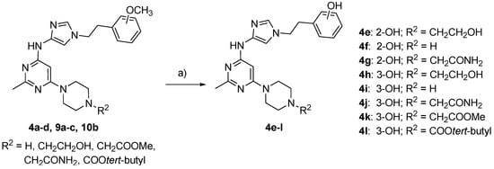 3.2.8. General Procedure for the Synthesis of (2-{4-[(2-Methyl-6-piperazin-1-ylpyrimidin-4-yl)amino]-1H-imidazol-1-yl}ethyl)phenol Derivatives 4e–l