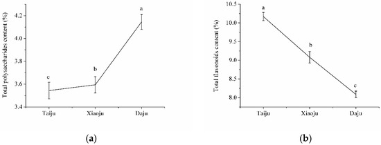 3.4. Reference Measurement of Total Polysaccharides and Total Flavonoids