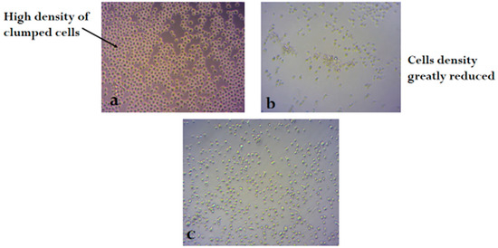 Photomicrograph of leukemia cancer cell line (a) untreated, (b) treated with cisplatin, and (c) treated with compound 3 (H&E × 200).