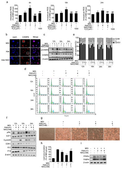 Furthermore, we added NAC with adenanthin together for recovering the ROS level back to the level of control (Figure 4a) and monitored the changes in DNA content of 3T3-L1 cells. The result showed that the percentage of cells in the G0/G1 phase of the group treated with adenanthin and NAC was recovered to the normal level, strongly supporting the idea that adenanthin enhanced ROS production and then delayed MCE (Figure 4d,e).