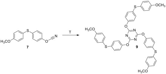 3.3.3. Synthesis and Characterization of (4-cyanatophenyl)(4′-methoxyphenyl)sulfane 7