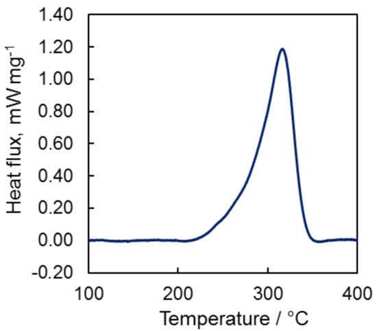 DSC curve for cyclotrotrimerization of compound 7 (heating rate of 10 °C min−1, argon atmosphere).