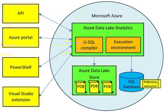 Our PDBUSQLExtractor parser with all extraction methods was developed for the Azure Data Lake environment. Azure Data Lake (ADL) is a scalable, cloud environment that enables storing and analyzing large data sets. The interactive batch analysis in the ADL is possible in real time for various types of data, including structured, semi-structured, and unstructured data [44]. The architecture of our solution for extracting and processing Big macromolecular Data in Azure Data Lake is presented in Figure 1. The Azure Data Lake consists of two main components: