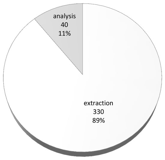 The execution of the presented U-SQL script for 14,750 protein structure from the DS2 data set stored in ten sequential files with 10 AUs took 370 s. In Figure 10 we can see the computational costs of the data extraction and the data analysis. We can see clearly that, in case of the presented analysis encoded in the U-SQL script, the computational cost of the data extraction is much higher (330 s) than the computational cost of the analysis performed (40 s). However, the proportions depend on the type of the analysis and complexity of the U-SQL code nested between the EXTRACT and the OUTPUT expressions.