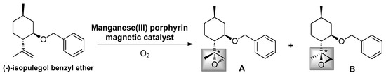 Synthesis of diasteromeric (−)-isopulegol benzyl ether epoxide (A and B), using O2 as oxidant and a hybrid manganese (III)-porphyrin magnetic nanocomposite as catalyst.
