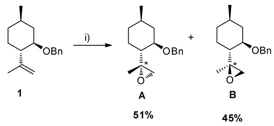 2.2. Epoxidation Reaction of (−)-Isopulegol Benzyl Ether (1)