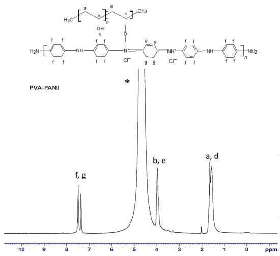 1H-NMR spectra for PVA–PANI in D2O (*).