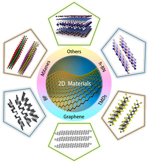 - Zhang, H.; Chhowalla, M.; Liu, Z. 2D nanomaterials: Graphene and transition metal dichalcogenides. Chem. Soc. Rev. 2018, 47, 3015–3017. [Google Scholar] [CrossRef] [PubMed]