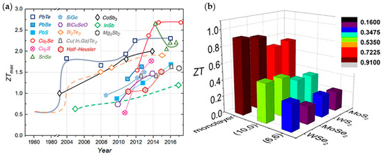 - Zhang, G.; Zhang, Y.-W. Thermoelectric properties of two-dimensional transition metal dichalcogenides. J. Mater. Chem. C 2017, 5, 7684–7698. [Google Scholar] [CrossRef]