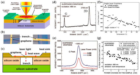 - Chen, S.; Moore, A.L.; Cai, W.; Suk, J.W.; An, J.; Mishra, C.; Amos, C.; Magnuson, C.W.; Kang, J.; Shi, L.; et al. Raman Measurements of Thermal Transport in Suspended Monolayer Graphene of Variable Sizes in Vacuum and Gaseous Environments. ACS Nano 2011, 5, 321–328. [Google Scholar] [CrossRef]