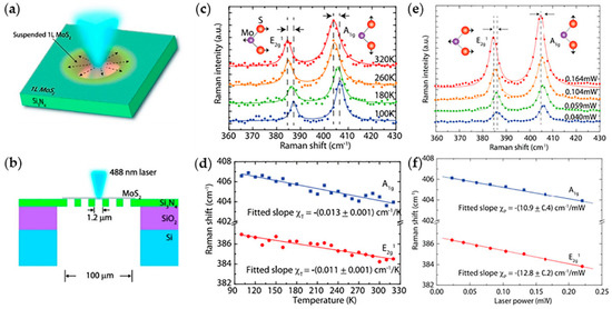 | MoS2 | 1.2 μm | A1g −0.013 ± 0.001 E2g1 −0.011 ± 0.001 | A1g −10.9 ± 0.4 E2g1 −12.8 ± 0.2 | 34.5 ± 4 | Yan et al. [110] |