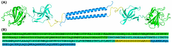 3D model and amino acid sequence of Lst-HDD. (A) A theoretical model of Lst-HDD homodimer. Lysostaphin catalytic domain is colored green, lysostaphin peptidoglycan-binding domain is colored cyan, dimerization domain is colored blue and spacer is colored yellow. The model was constructed in PyMOL (Schrödinger LLC, USA) based on PDB entry 4LXC. (B) The amino acid sequence of Lst-HDD. The color scheme as in (A).