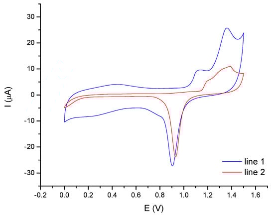 Ten CV-scans in H2SO4 were recorded before the analysis start. CV-treatment in H2SO4 is also used by many researchers as activation step for noble metals-based electrodes []: in our experience, it is convenient to combine this procedure with a further activation step by applying a potential of 0.60 V for 60 s in 0.06 M HCl solution before mercury determination: this step is useful for removing all naturally occurring Au oxides from the surface of the electrode. The combination of these two electrochemical pretreatments permits improving the quality and the reproducibility of Hg signal.