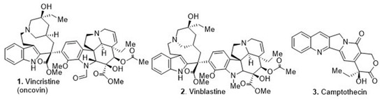 Cancer is a complex chronic disease characterized by abnormal signaling processes that leads to aberrant cellular growth, causing premature death worldwide [1,2]. Natural products have a strong track record in the development of anti-cancer agents, thus many drug discovery programs continue to exploit this rich source of molecular scaffolds [3]. The re-emergence of natural products for drug discovery in the genomics era enables the use of advanced cellular models that recapitulate the disease of interest. Natural products, particularly alkaloids, are commonly used in ethnopharmacology and several are in clinical use (Figure 1).