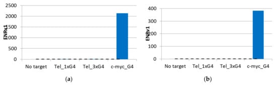 Several other oncogenes also have G-quartet regulatory elements in their promoters [,,]. Multiple compounds have been identified as potential c-myc inhibitors [,,], including a compound that entered a Phase I clinical trial []. If robust new strategies for specifically targeting gene promoter G-quartet structures could be established, their therapeutic potential could be broad []. However, despite considerable efforts, a G-quartet-modulating drug is not yet available, and molecules that discriminate between different G-quartet structures have proven challenging to discover [].