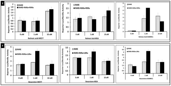 - Tanaka, T.; Dancheck, B.L.; Trifiletti, L.C.; Birnkrant, R.E.; Taylor, B.J.; Garfield, S.H.; Thorgeirsson, U.; Luca, L.M.D. Altered localization of retinoid X receptor alpha coincides with loss of retinoid responsiveness in human breast cancer MDA-MB-231 cells. Mol. Cell Biol. 2004, 24, 3972–3982. [Google Scholar] [CrossRef]