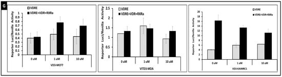 Many studies have shown an inverse correlation between breast cancer and uptake of vitamin D and calcium []. Vitamin D3 (1,25-dihydroxyvitamin D3 [1,25(OH)2D3]), the active form of VitD exerts its cellular activity through vitamin D receptor (VDR) which works as a heterodimer with RXRa. The VDR and vitamin D 1-hydroxylase, the enzyme that generates 1,25(OH)2D3, are expressed in the normal mouse mammary gland and human breast [] and1,25-dihydroxyvitamin D3 [1,25(OH)2D3] has been shown to inhibit the breast cancer cell growth [].