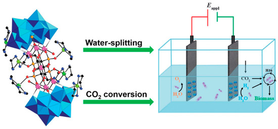 - Wang, M.; Zhong, W.; Zhang, S.; Liu, R.; Xing, J.; Zhang, G. An overall water-splitting polyoxometalate catalyst for the electromicrobial conversion of CO2 in neutral water. J. Mater. Chem. A 2018, 6, 9915–9921. [Google Scholar] [CrossRef]