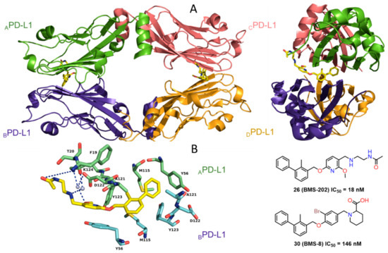 - Zak, K.M.; Grudnik, P.; Guzik, K.; Zieba, B.J.; Musielak, B.; Dömling, A.; Dubin, G.; Holak, T.A. Structural basis for small molecule targeting of the programmed death ligand 1 (PD-L1). Oncotarget 2016, 7, 30323–30335. [Google Scholar] [CrossRef]
