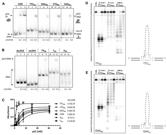 2.1. Interaction of p53 with Non-B DNA Structures Derived from TTC, GAA, CTG and CAG Trinucleotide Repeat Sequences
