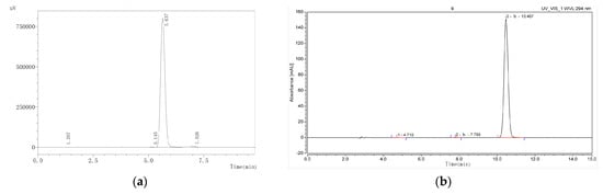 The HPLC chromatogram of magnolol and honokiol. (a) Magnolol; (b) honokiol.