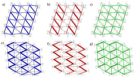 We calculated the intermolecular energies using CrystalExplorer [25] which gives more detail about the interactions in the solid. The calculations were performed using the 1.235(8) GPa and 0.94(4) GPa crystal structures of Form II and III, respectively, that have been subject to geometry optimization. In each of the forms, the interactions through the hydrogen bonded chain is the strongest interaction; however, there is a distinct difference in the energy between molecules of neighbouring chains. The change is associated with the interaction involving the carbonyl moieties of the amide groups. In Figure 9f, the interaction through the carbonyl groups is denoted by the second largest linking tube in Form III. In terms of total energy of interactions for Form III, there is little difference between the hydrogen-bonding interaction and the carbonyl-interaction (−38.1 vs. −38.6 kJ·mol−1); the spatial arrangement in Form II does not enable the carbonyl interaction. The importance of carbonyl-carbonyl interactions has been highlighted before by Allen and co-workers who used the Cambridge Structural Database to identify optimal geometries of the inter-carbonyl interaction and used calculations to show their comparative strength against hydrogen-bonding interactions [22,36]. Further work at high pressure has demonstrated its importance in amide complexes [37].