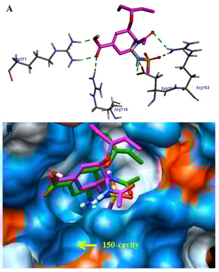 - Adabala, P.J.P.; LeGresley, E.B.; Bance, N.; Niikura, M.; Pinto, B.M. Exploitation of the Catalytic Site and 150 Cavity for Design of Influenza A Neuraminidase Inhibitors. J. Org. Chem. 2013, 78, 10867–10877. [Google Scholar] [CrossRef] [PubMed]