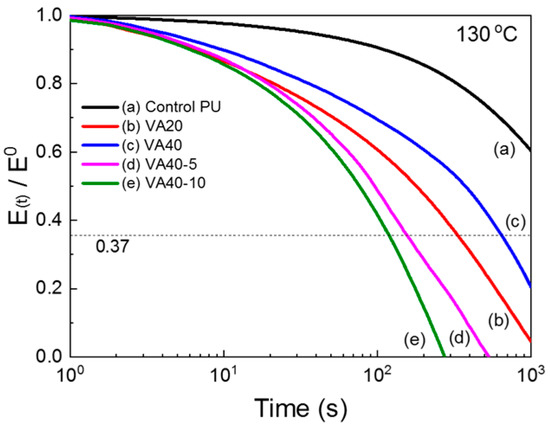 Stress-relaxation curves of the VA-based PUs at 130 °C.