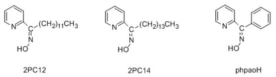 - Klonowska-Wieszczycka, K.; Olszanowski, A.; Parus, A.; Zydorczak, B. Removal of copper(ii) from chloride solutions using hydrophobic pyridyl ketone oximes. Solvent Extr. Ion Exch. 2009, 27, 50–62. [Google Scholar] [CrossRef]
