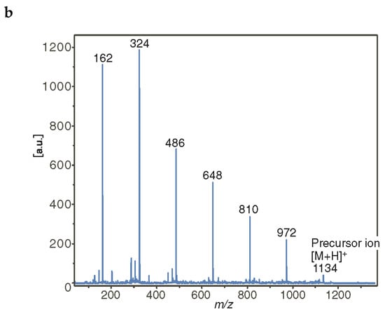 - Zaya, J. Mass spectrometry of oligosaccharides. Mass Spectrom. Rev. 2004, 23, 161–227. [Google Scholar] [CrossRef]