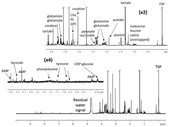 NMR metabolomics studies of cancer are applied to different kind of samples, such as bio-fluids (e.g., urine, whole blood, serum, plasma) and tissue/cell extracts (e.g., liver, brain, or kidney). Samples are normally examined directly, without extensive sample preparation, so that beside in vivo and in situ, a huge number of bio-fluids information are easily obtained [4,42,43,44,45,46,47,48,49,50,51].