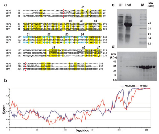 - Graslund, S.; Sagemark, J.; Berglund, H.; Dahlgren, L.G.; Flores, A.; Hammarstrom, M.; Johansson, I.; Kotenyova, T.; Nilsson, M.; Nordlund, P.; et al. The use of systematic N- and C-terminal deletions to promote production and structural studies of recombinant proteins. Protein Expr. Purif. 2008, 58, 210–221. [Google Scholar] [CrossRef]