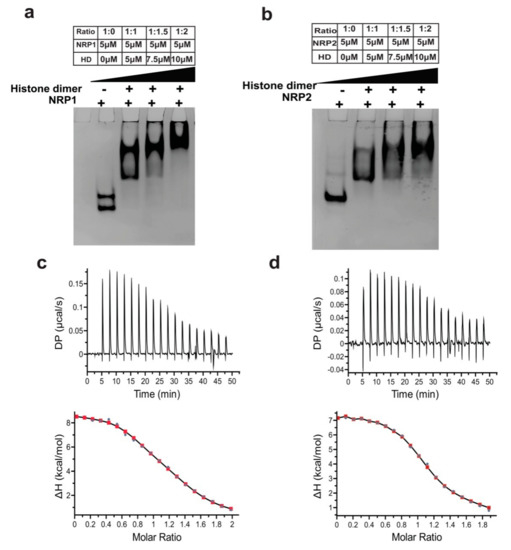| NRP2:H2A-H2B | 39.6 ± 0.455 | 1.0 ± 0.0004 | 7.28 ± 0.04 | 1.33 ± 0.06 | −17.4 | −9.51 | 9.8 × 10−3 |