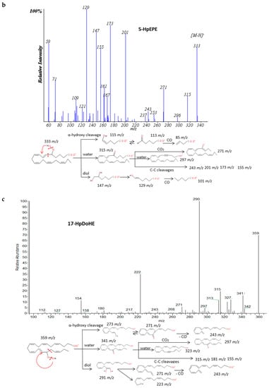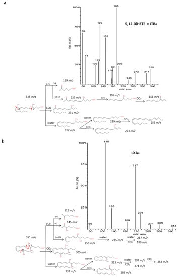 2.2. Fragmentation Patterns Through the Analysis of Mass Spectra of Lipid Mediators