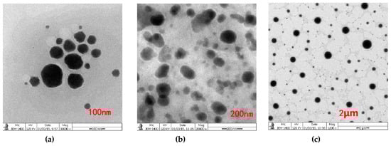 The spontaneous structural transition of Span60-RH40 aggregates was further confirmed by aggregate size combined with the conductivity and viscosity. When the mass fraction of RH40 was dominant, the aggregate size was relatively constant and small. The system had a water-like viscosity and mixed micelles may form. With an increasing mass fraction of Span60, the hydrophobicity of the system increased, and the viscosity and aggregate size increased. The increasing Span60 may induce the formation of niosomes. However, with a further increase in Span60, the viscosity and size also sharply increased due to the existence of abundant larger multilamellar niosomes, which caused precipitate formation. The formation of niosomes was also verified by TEM (Figure 3).