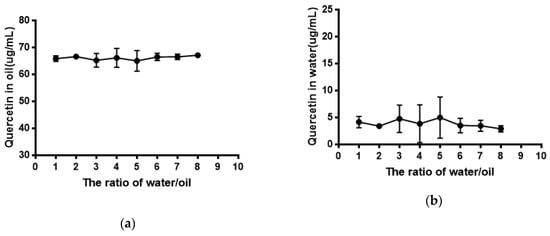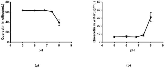 (a) Quercetin in oil at different pH; (b) Quercetin in water at different pH.