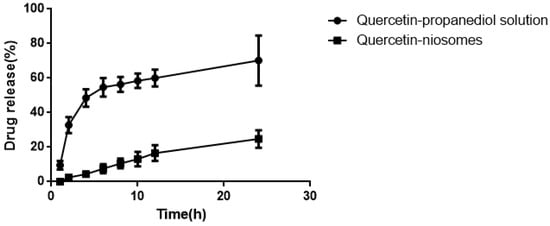 Release behavior of quercetin-propanediol solution and quercetin-niosome in 0.8% Tween80 (pH 5.0).