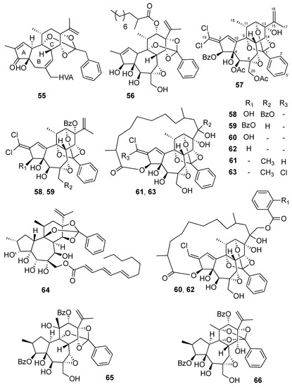 chikungunya; Euphorbiaceae; phorbol; tigliane; daphnane; ingenane; jatrophane; pre-myrsinane; flexibilane; PKC 1. Introduction