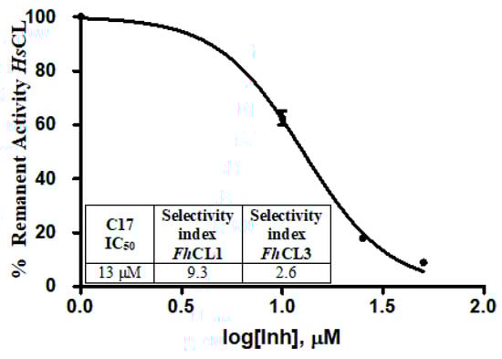 | Comp. (10 μM) | HsCL inhib.% | FhCL1 inhib.% | FhCL3 inhib.% |