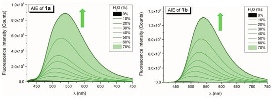 Fluorescence spectra of 1a (left) and 1b (right) in THF/water mixtures with different water fractions. AIE, aggregation-induced emission.