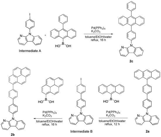 Preparation of final products 2a–2c (Suzuki coupling reactions):
