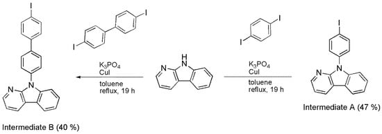 Preparation of 9-(4-iodophenyl)-9H-pyrido[2,3-b]indole (Intermediate A) and 9-(4′-iodo-[1,1′-biphenyl]-4-yl)-9H-pyrido[2,3-b]indole (Intermediate B)