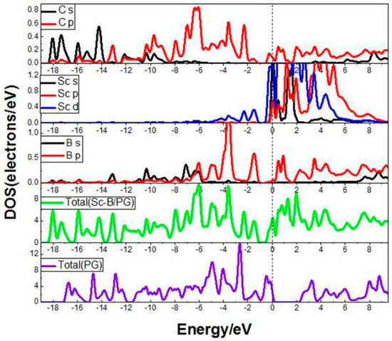DOS of the Sc-B/PG system and PG system.
